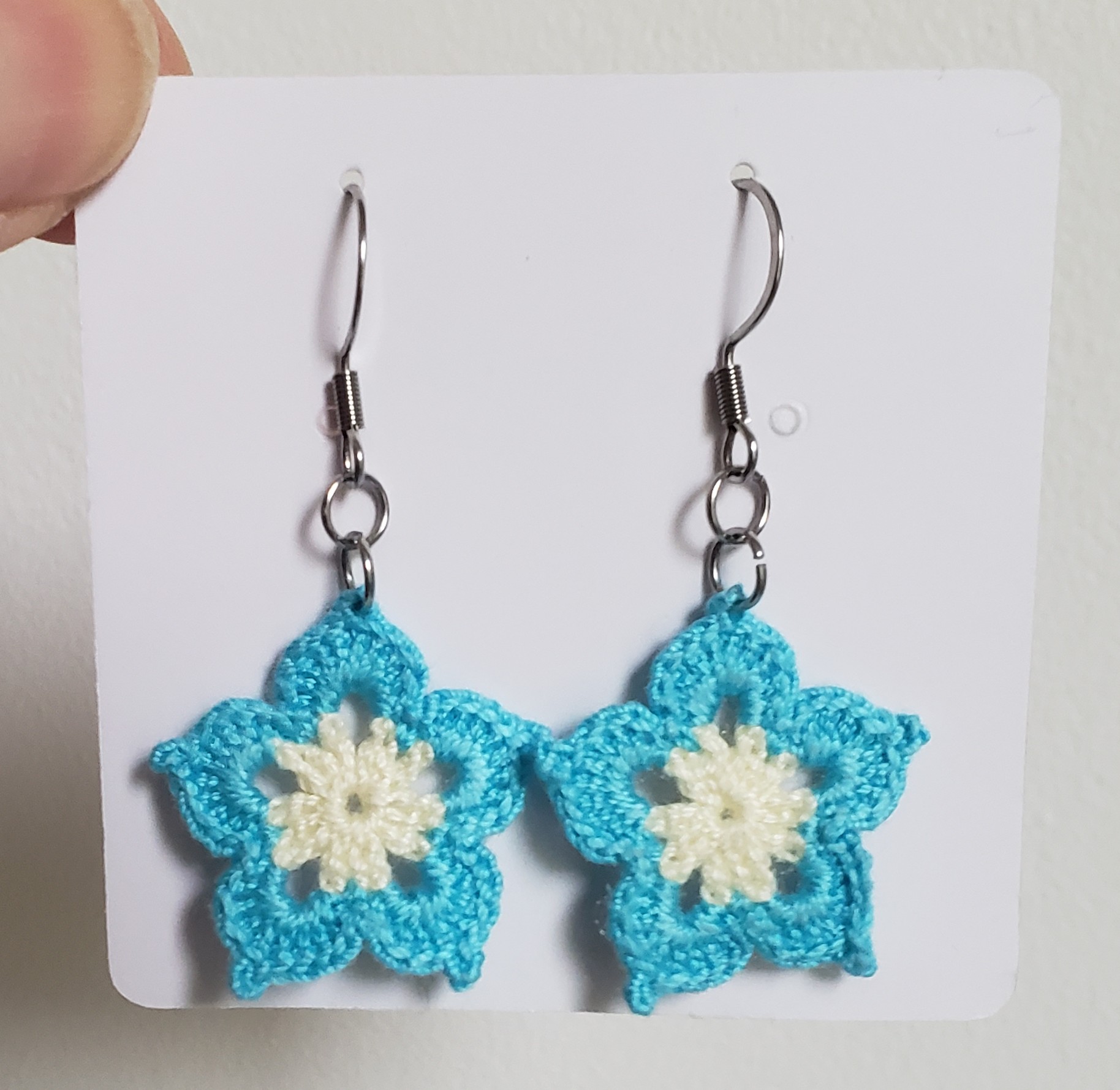 Adorables boucles d’oreilles avec des micros fleurs, miniatures fleurs Fait Main avec un Crochet très fin.